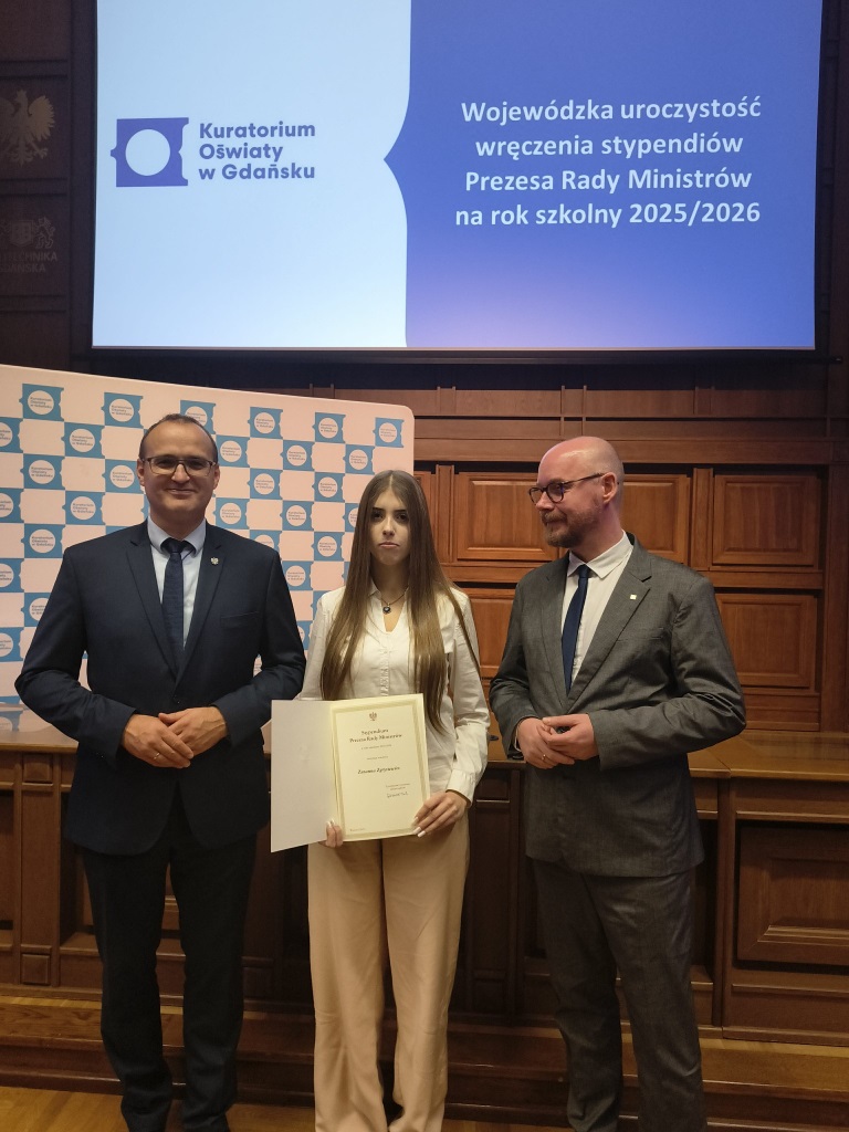 24 listopada 2025 roku w aulii Politechniki Gdańskiej odbyła się wyjątkowa uroczystość wręczenia Stypendiów Prezesa Rady Ministrów - jednego z najbardziej prestiżowych wyróżnień dla uczniów osiągających najwyższe wyniki w nauce. Podczas wydarzenia pamiątkowe dyplomy wręczyli stypendystom Wicewojewoda Pomorski oraz Pomorski Kurator Oświaty.